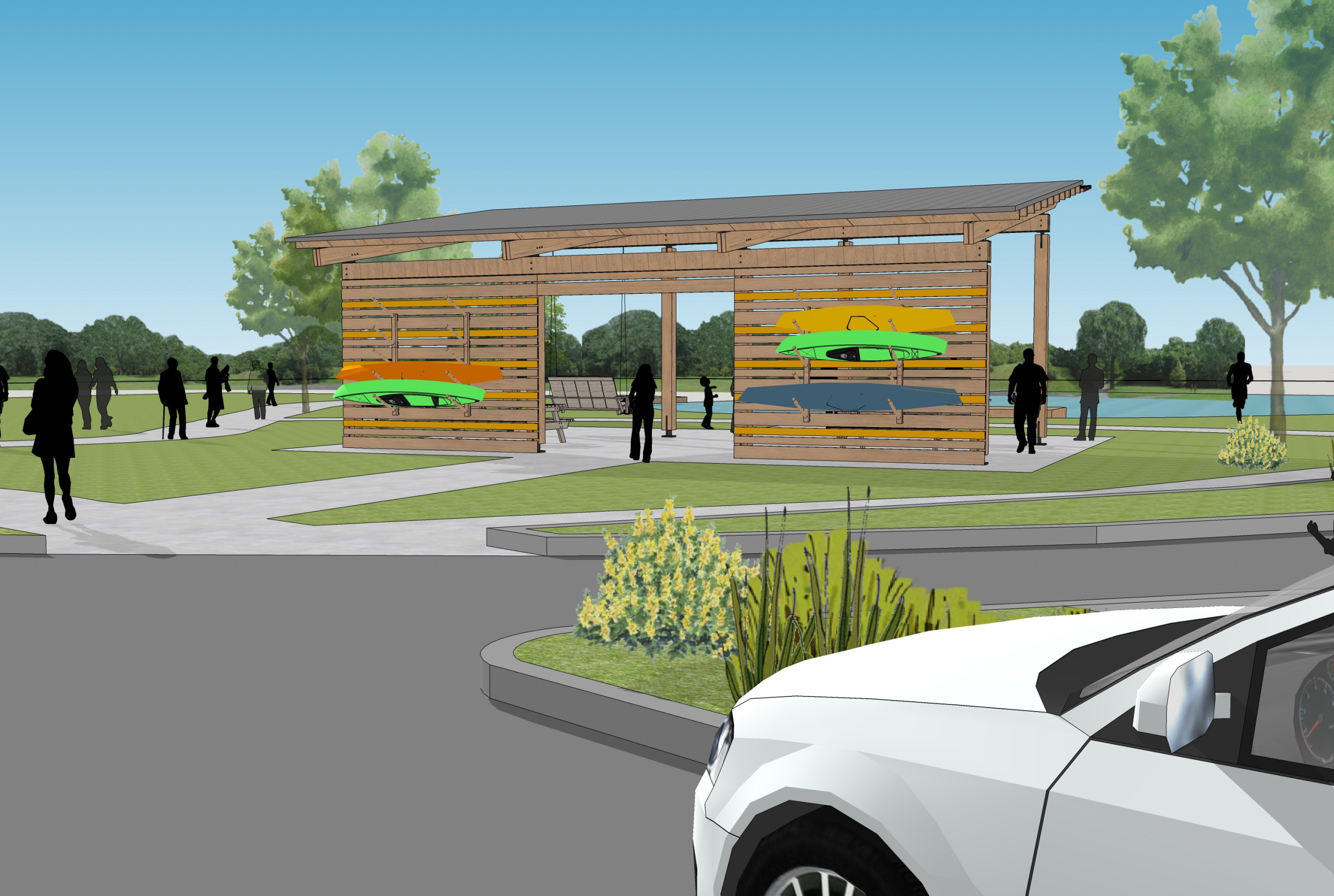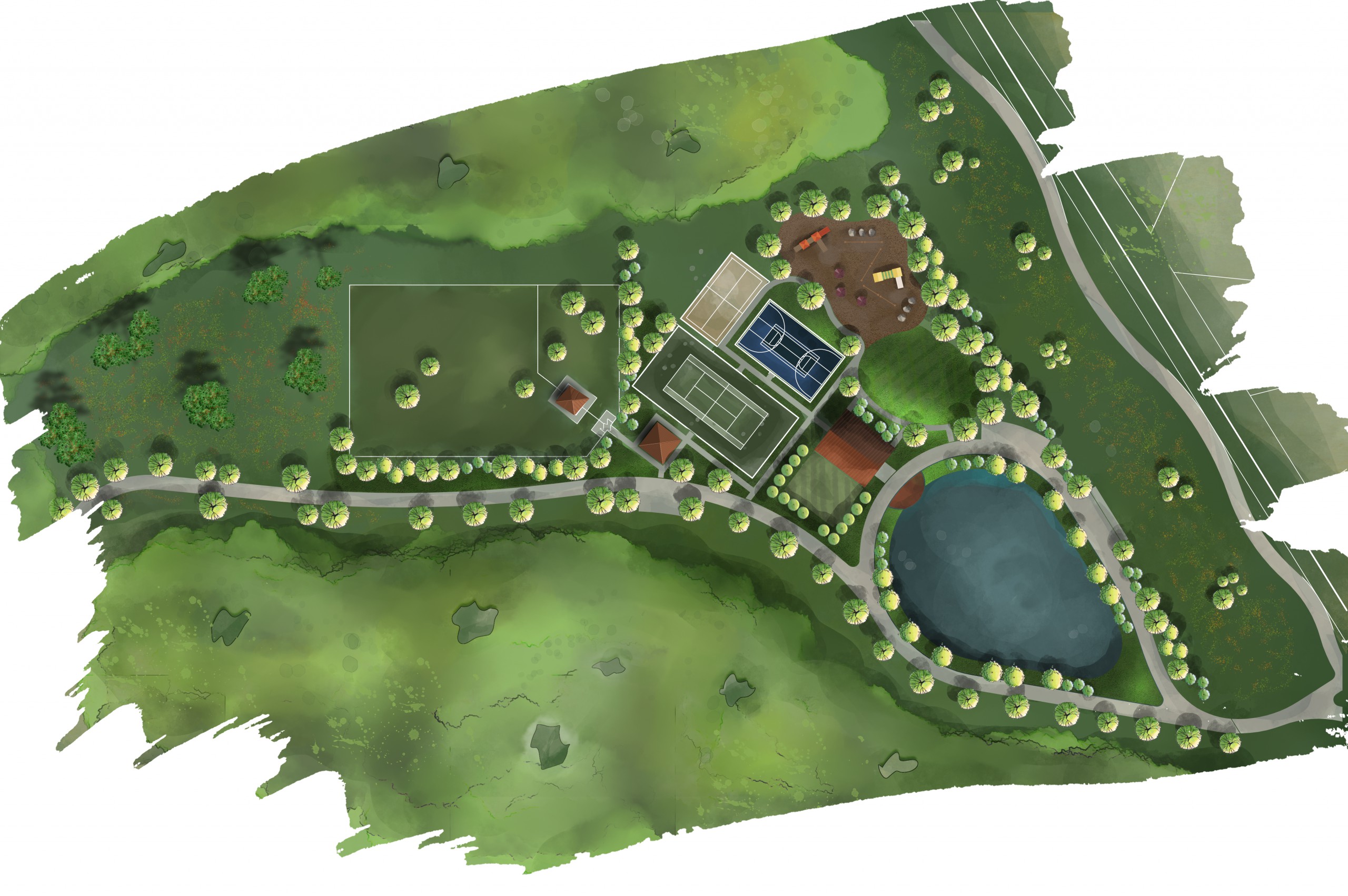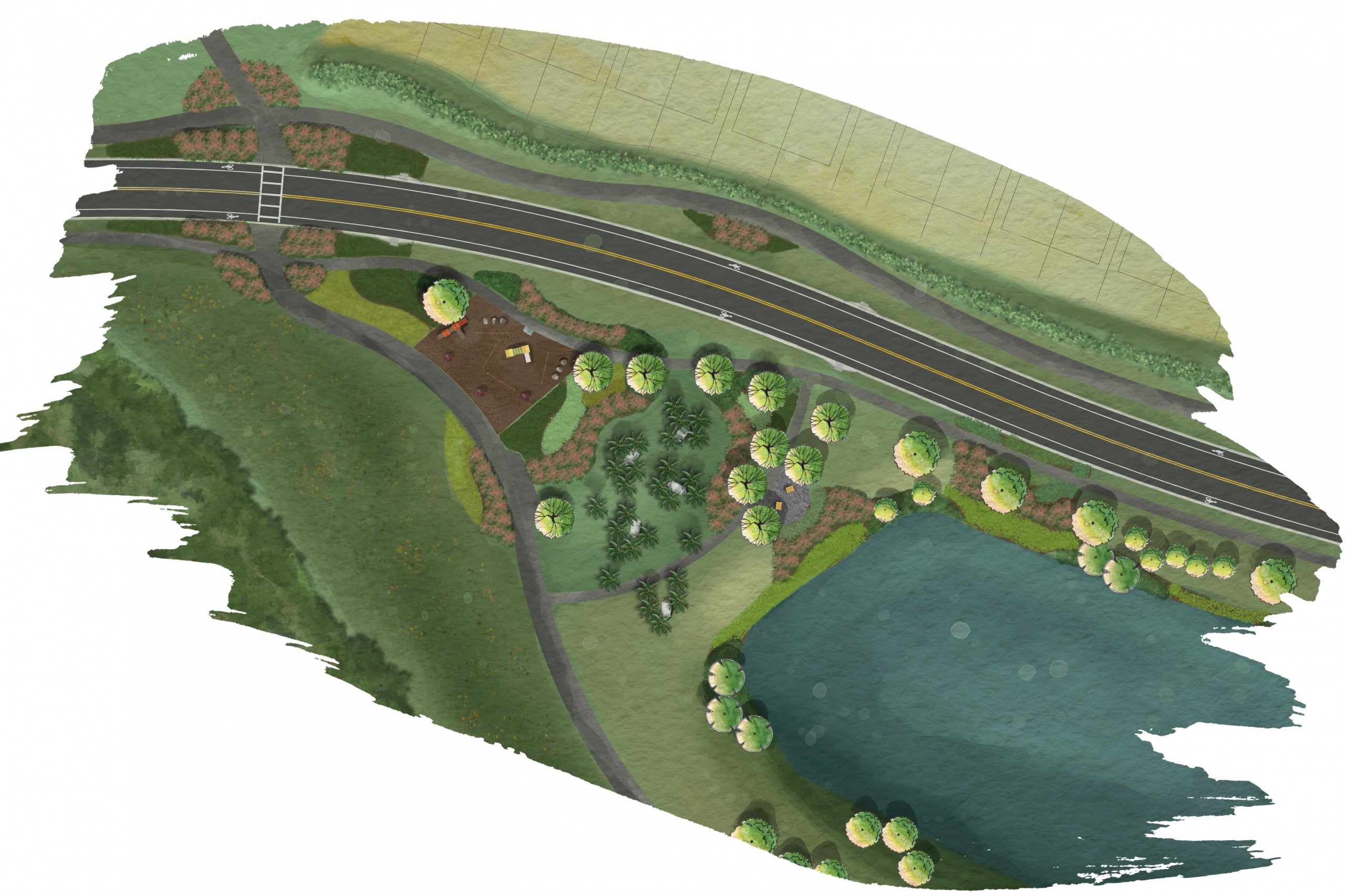 Little known fact: Four O’Clock is a type of wildflower that will be planted in this park. But the name is about more than that. It’s also about the feeling of freedom that comes with the end of a school or workday — when you have time to work out or just relax. And you can do just that here, thanks to a hammock grove, fitness area, trails and a pond overlook.